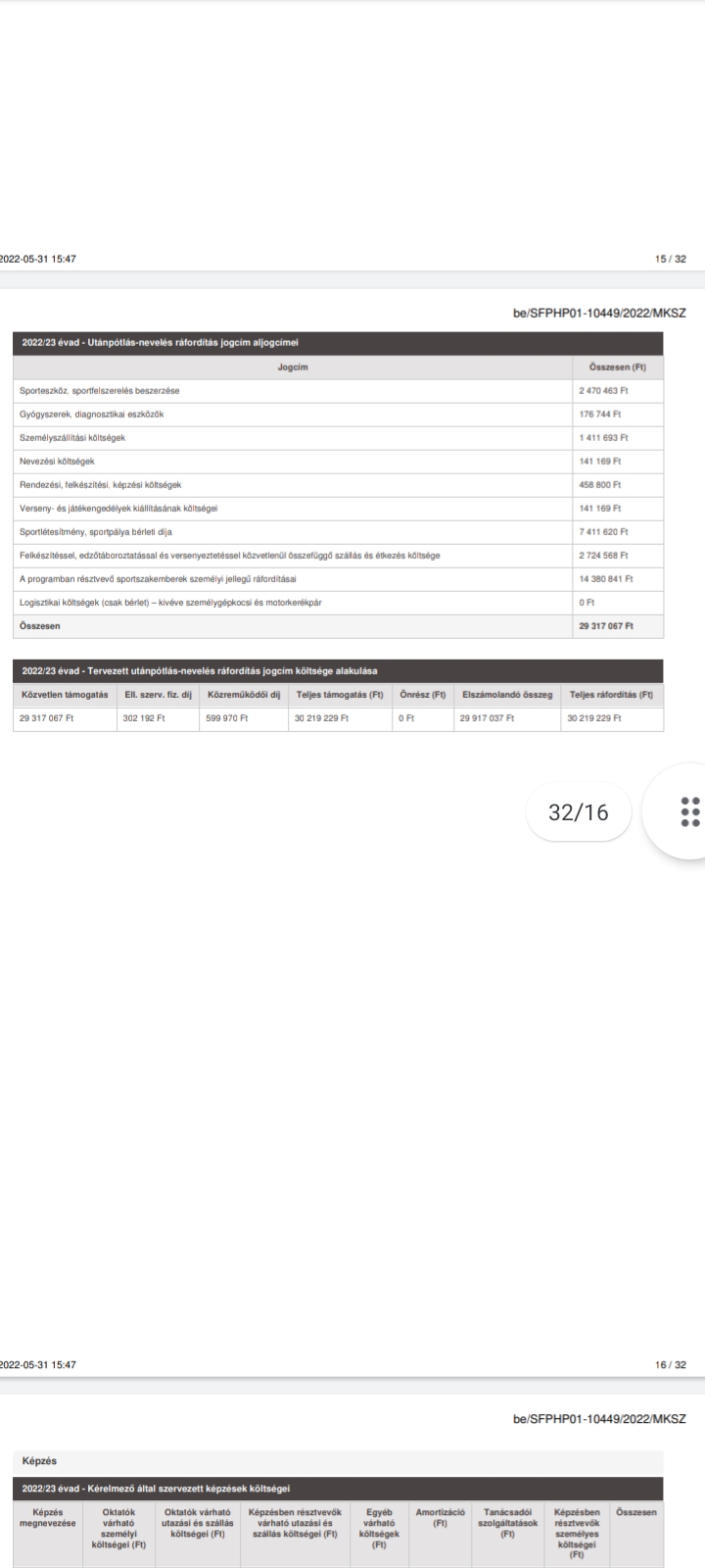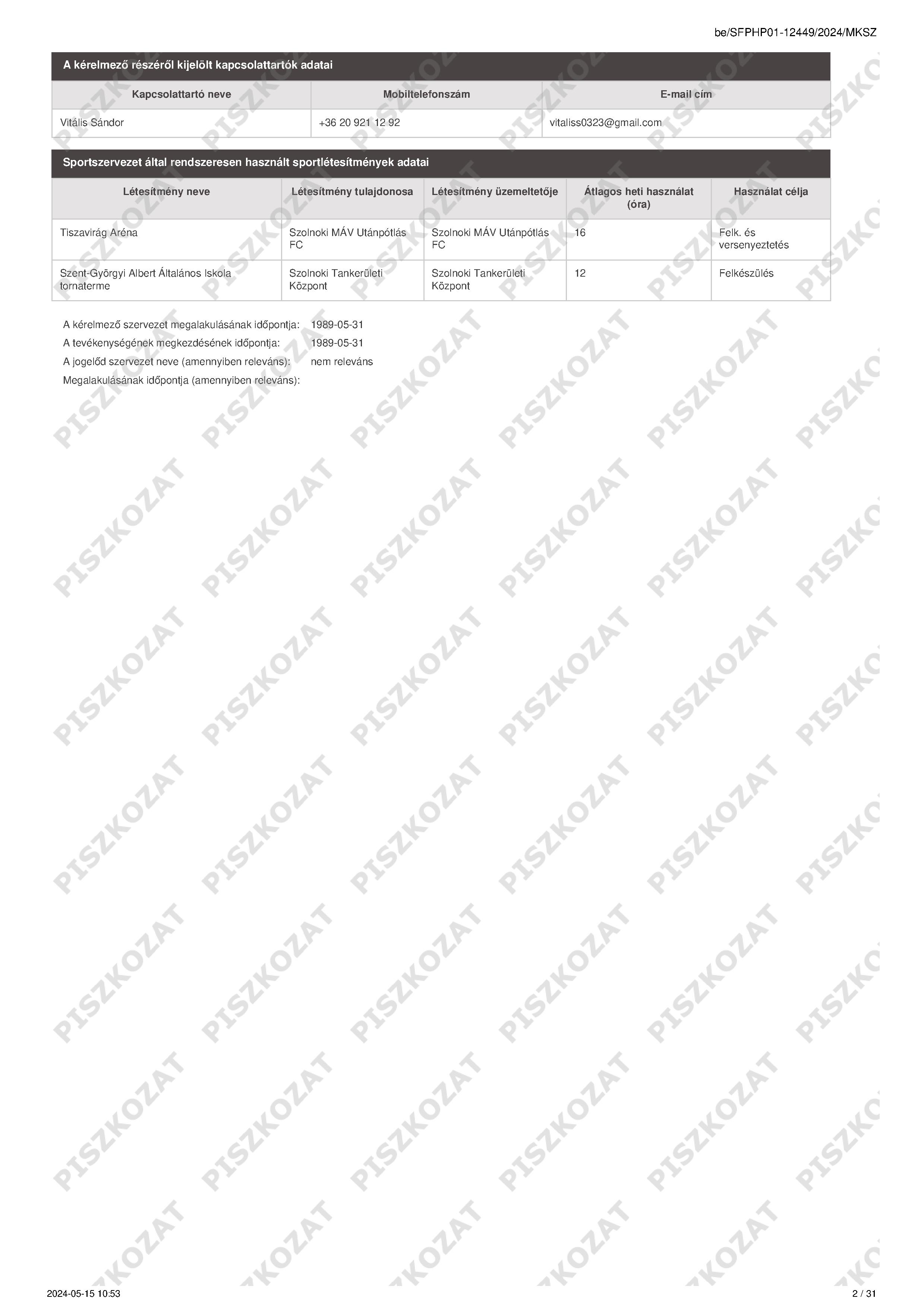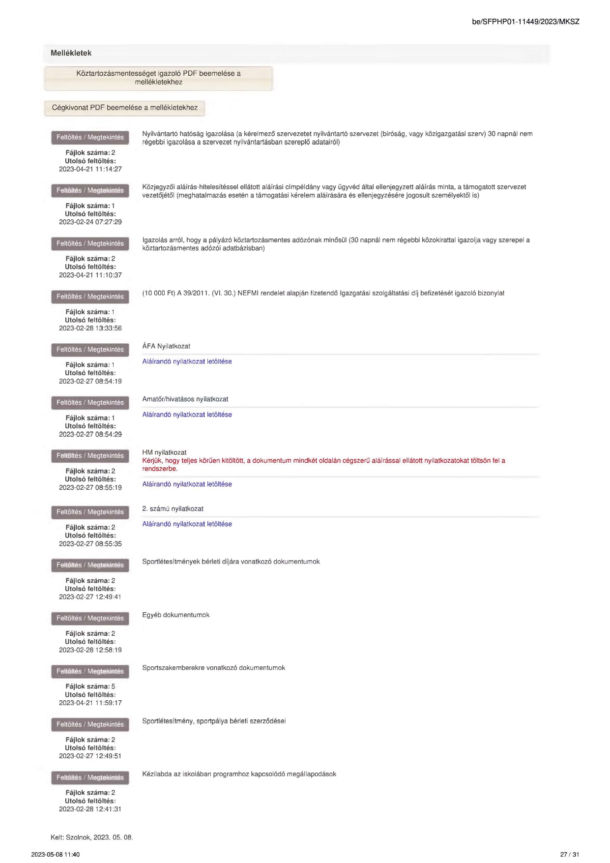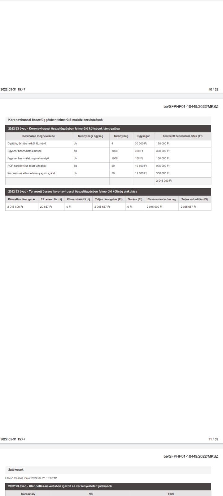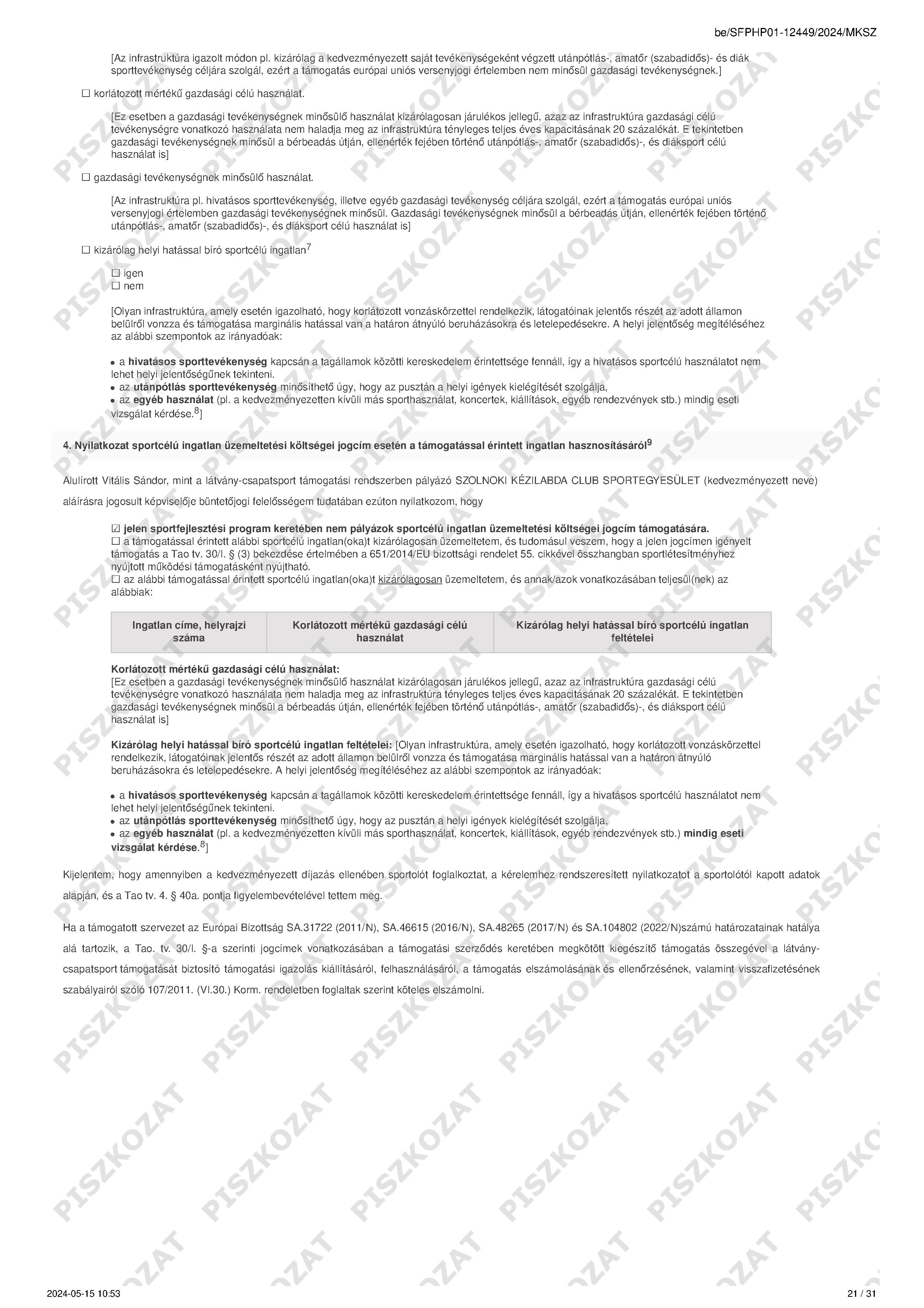 A támogatási igazolás kiállításának feltételét képező sportfejlesztési program jóváhagyására irányuló eljárással kapcsolatban a Szolnoki Kézilabda Club Sportegyesület kérelmező (5000 Szolnok Pipacs u. 10-12., adószáma: 19866767 - 1 - 16, képviselője: Vitális Sándor) sportfejlesztési programjának szakmai tartalmát, illetve annak költségvetését a Kormányrendelet 4. §-ának (5) bekezdése, valamint a sportfejlesztési programban rendelkezésre álló információk alapján jogcímenként az alábbi összegekben jóváhagyta: