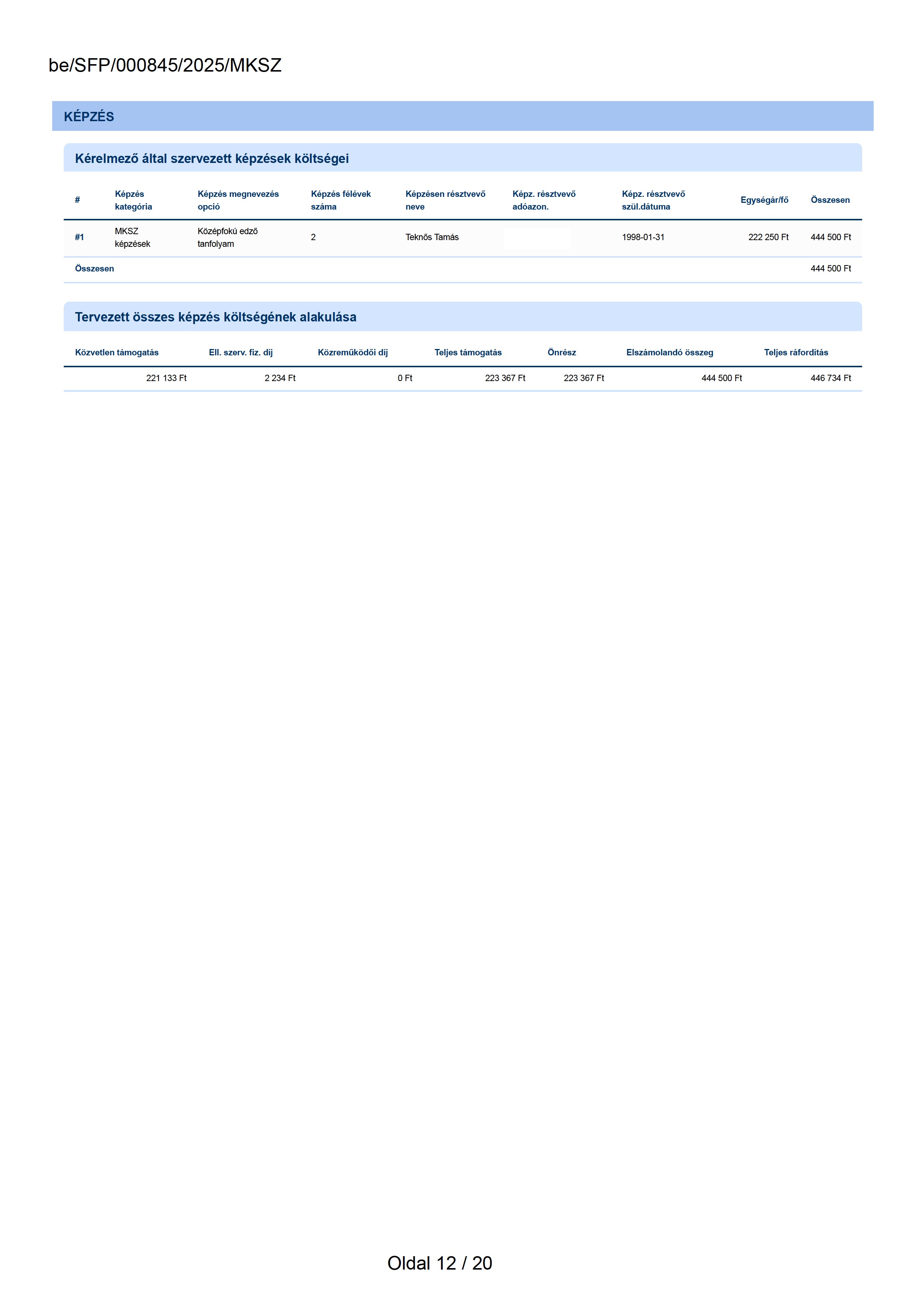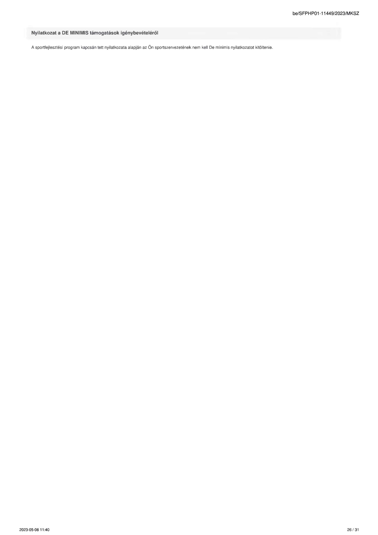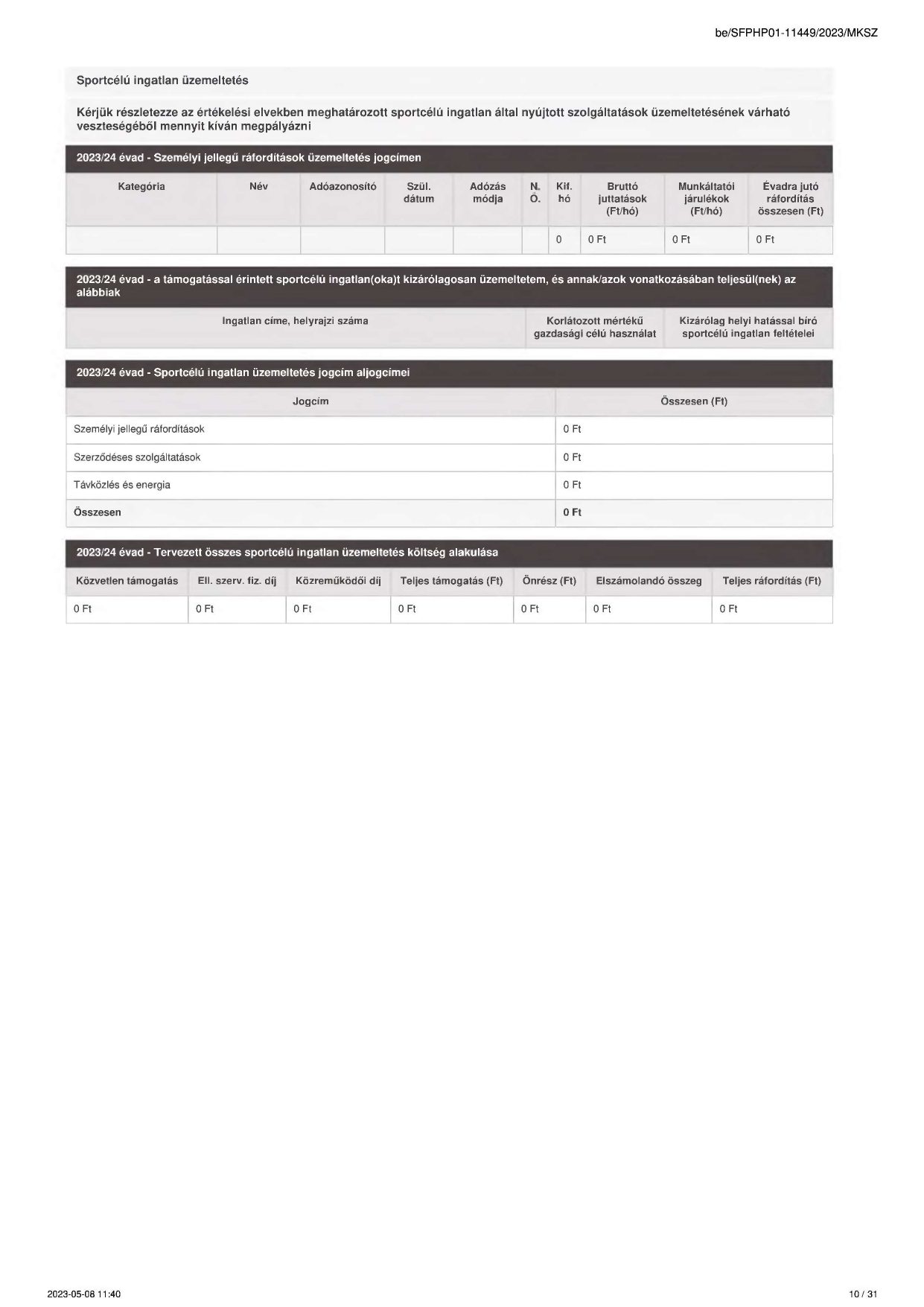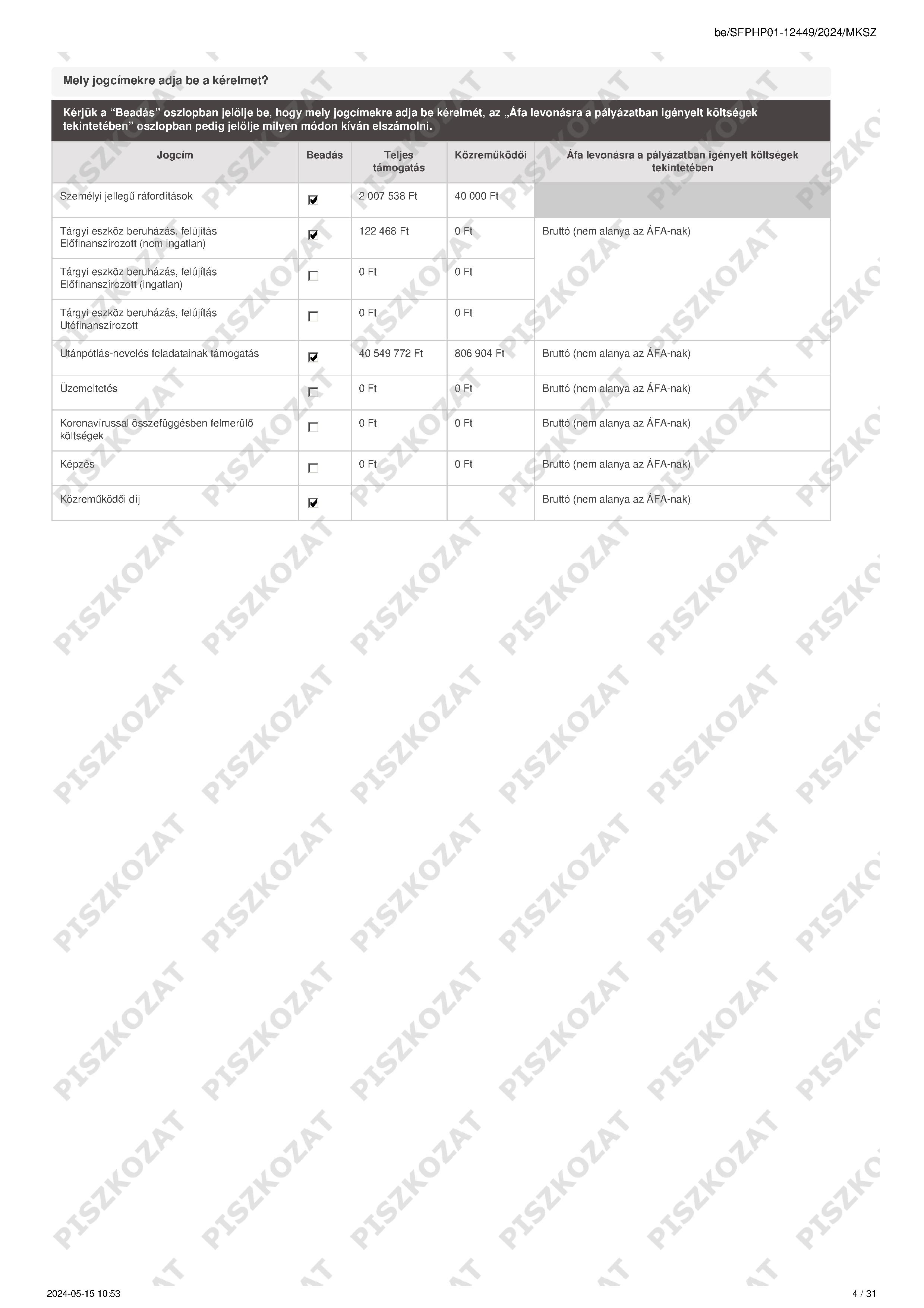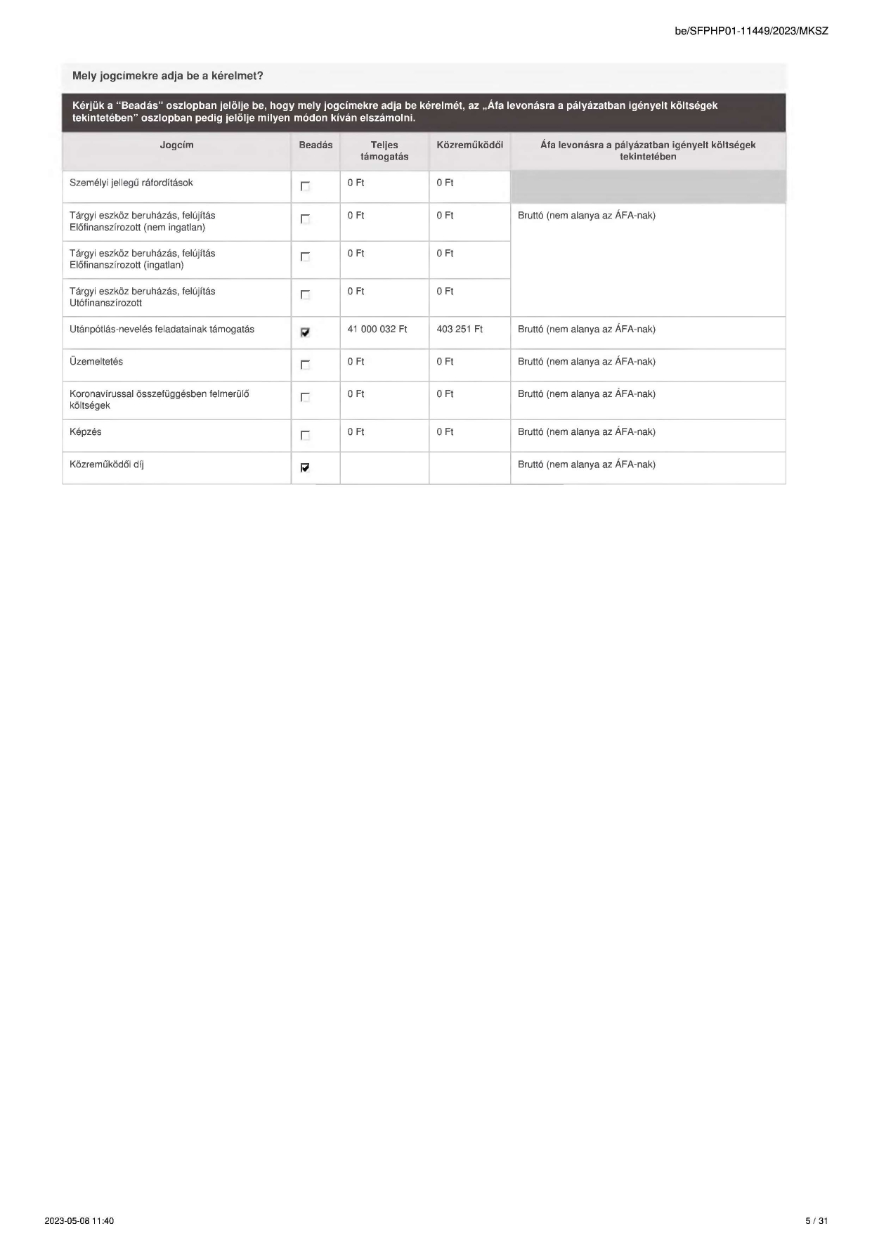 A támogatási igazolás kiállításának feltételét képező sportfejlesztési program jóváhagyására irányuló eljárással kapcsolatban a Szolnoki Kézilabda Club Sportegyesület kérelmező (5000 Szolnok Pipacs u. 10-12., adószáma: 19866767 - 1 - 16, képviselője: Vitális Sándor) sportfejlesztési programjának szakmai tartalmát, illetve annak költségvetését a Kormányrendelet 4. §-ának (5) bekezdése, valamint a sportfejlesztési programban rendelkezésre álló információk alapján jogcímenként az alábbi összegekben jóváhagyta: