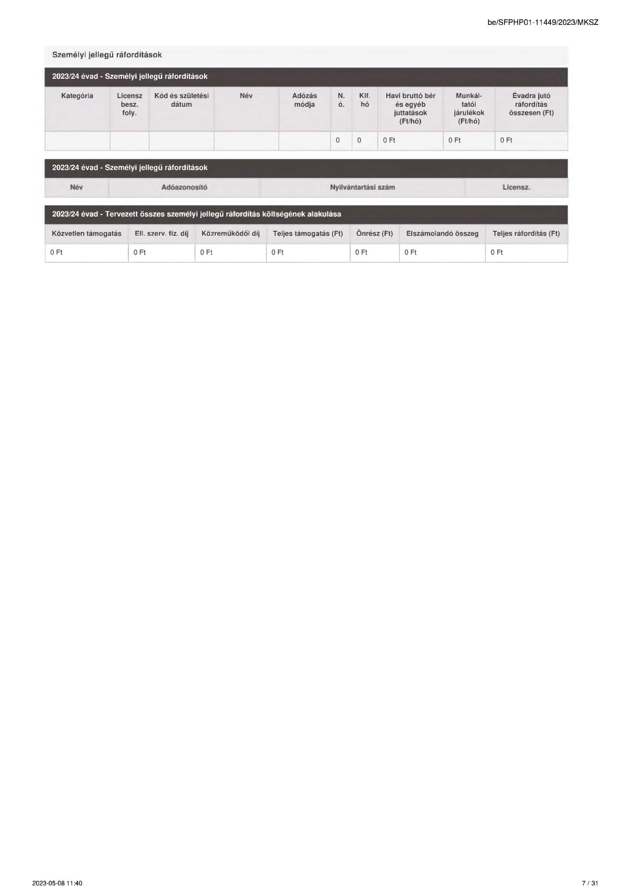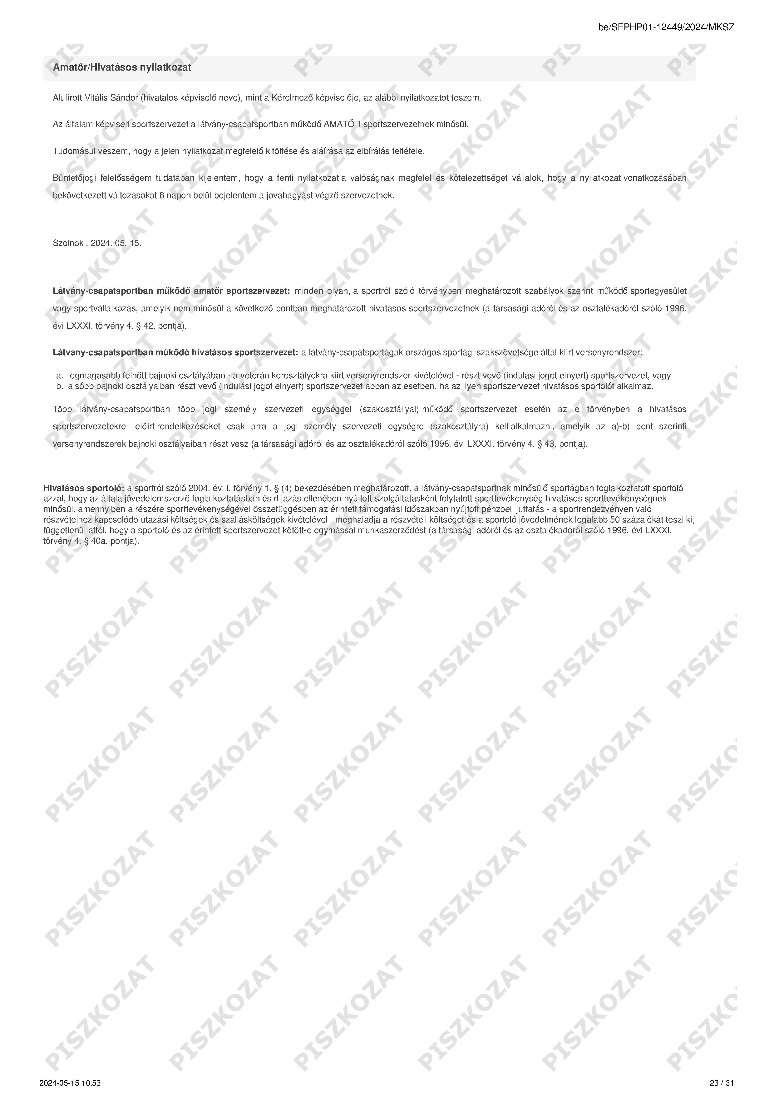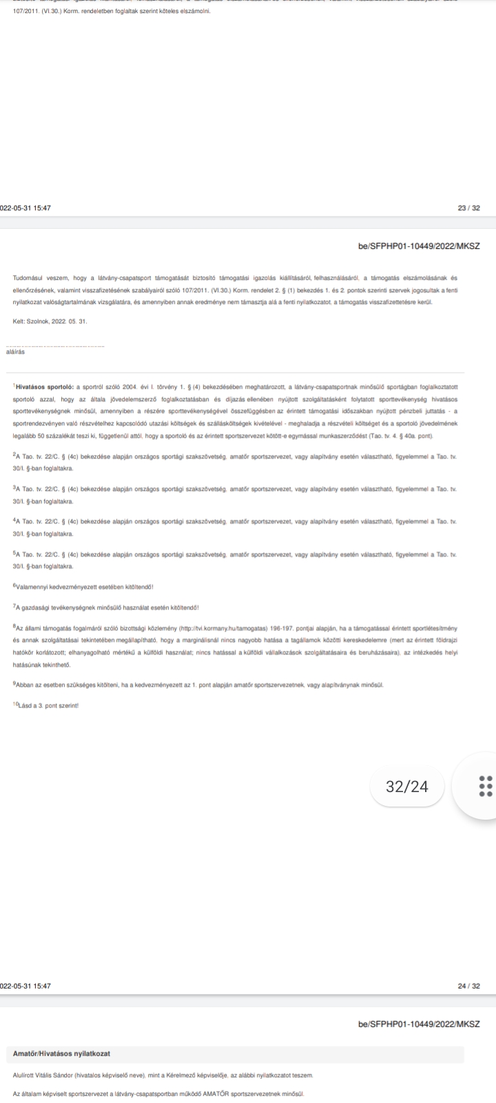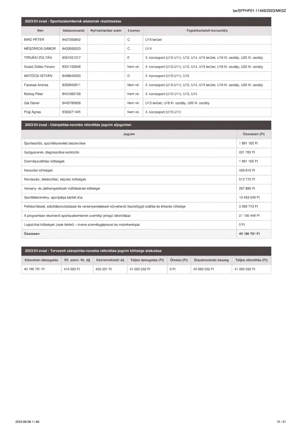 Jóváhagyó határozat, TAO pályázat teljes (2023/2024):