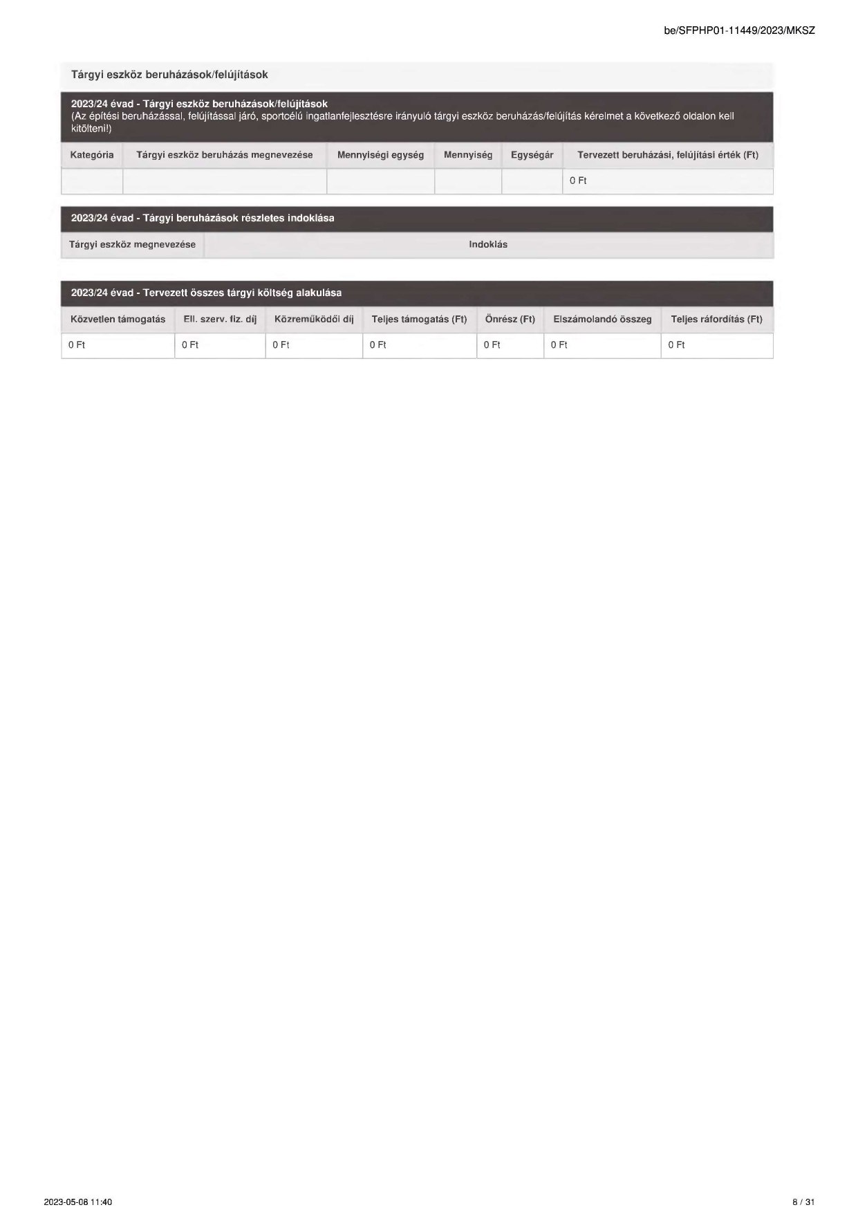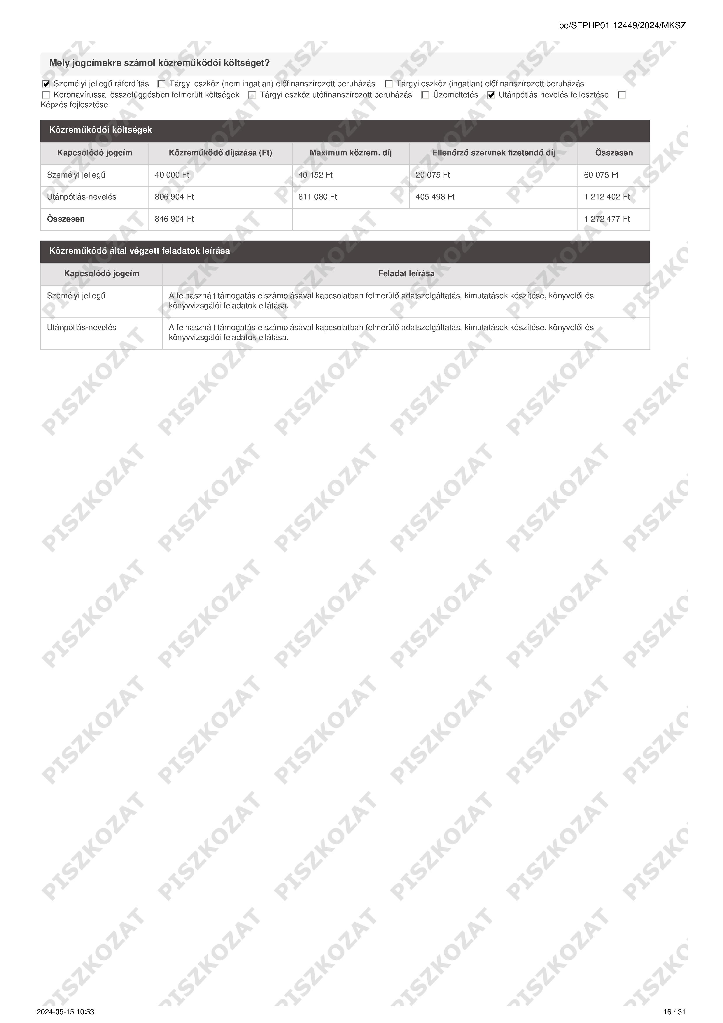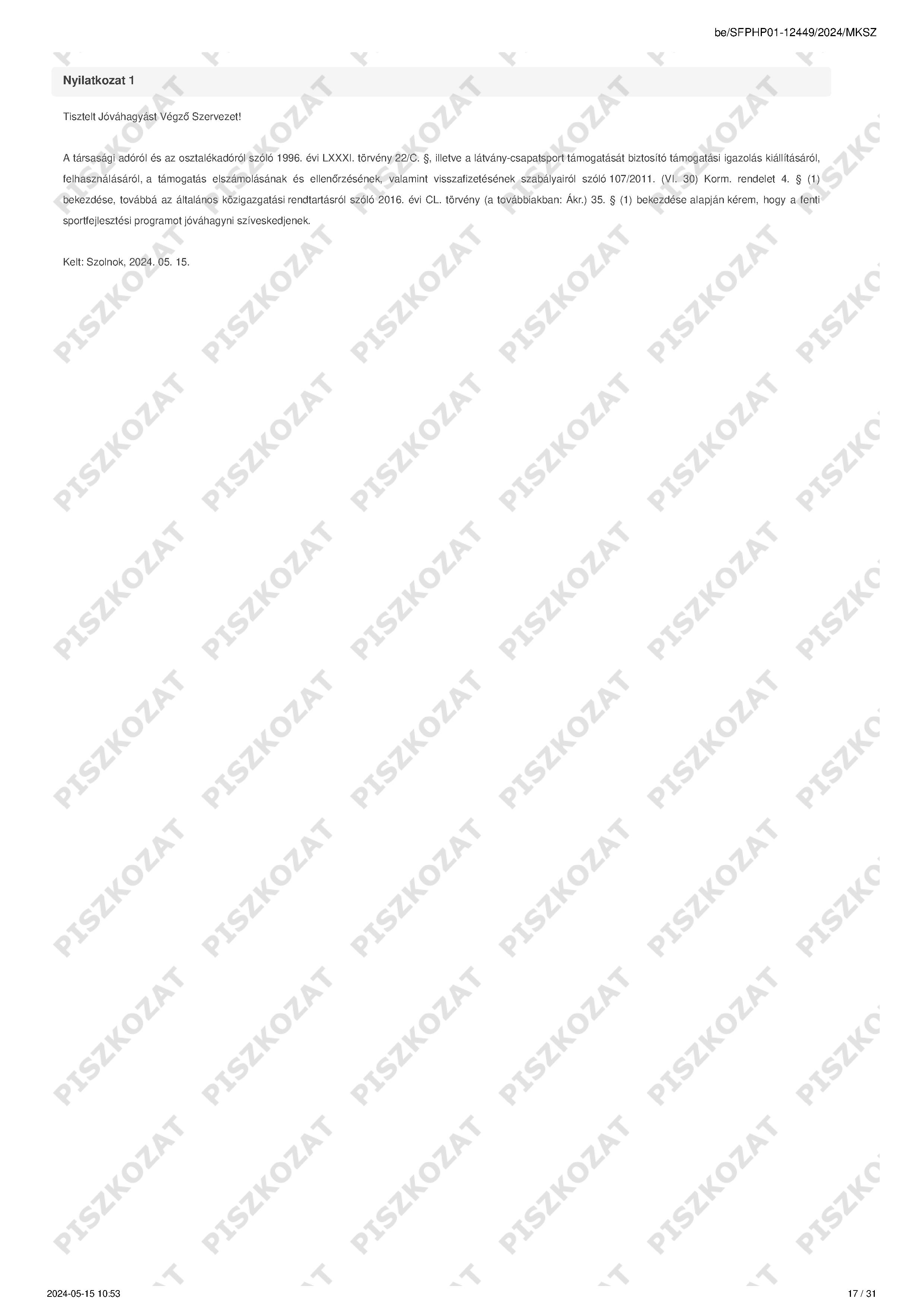 Jóváhagyó határozat, TAO pályázat teljes (2023/2024):