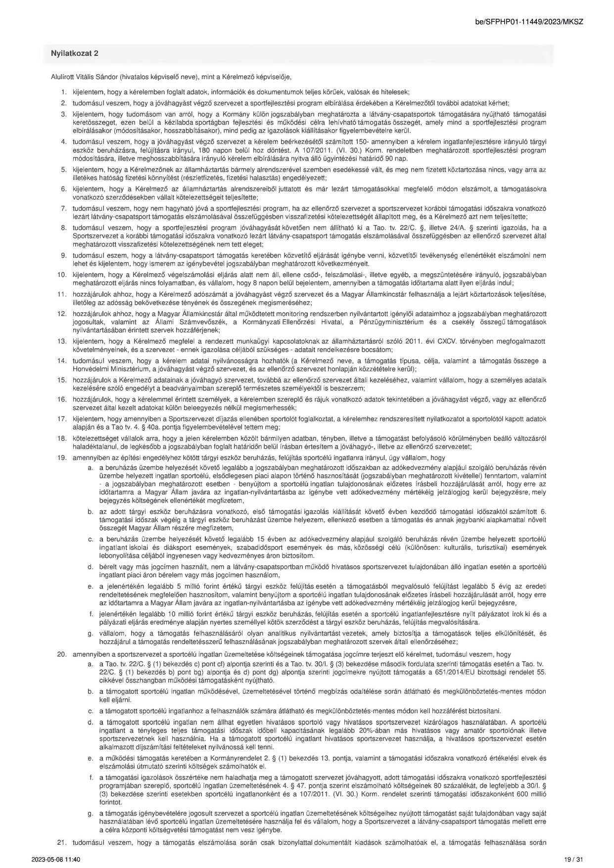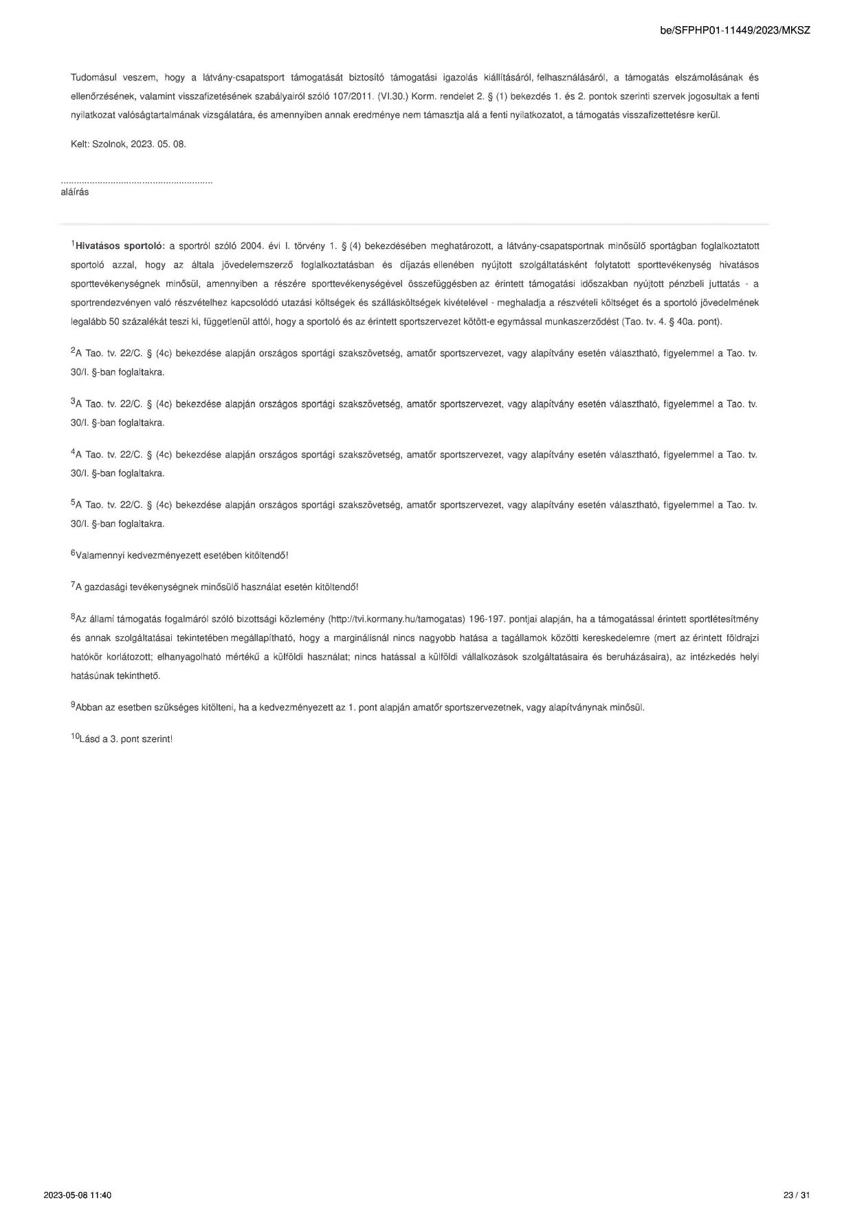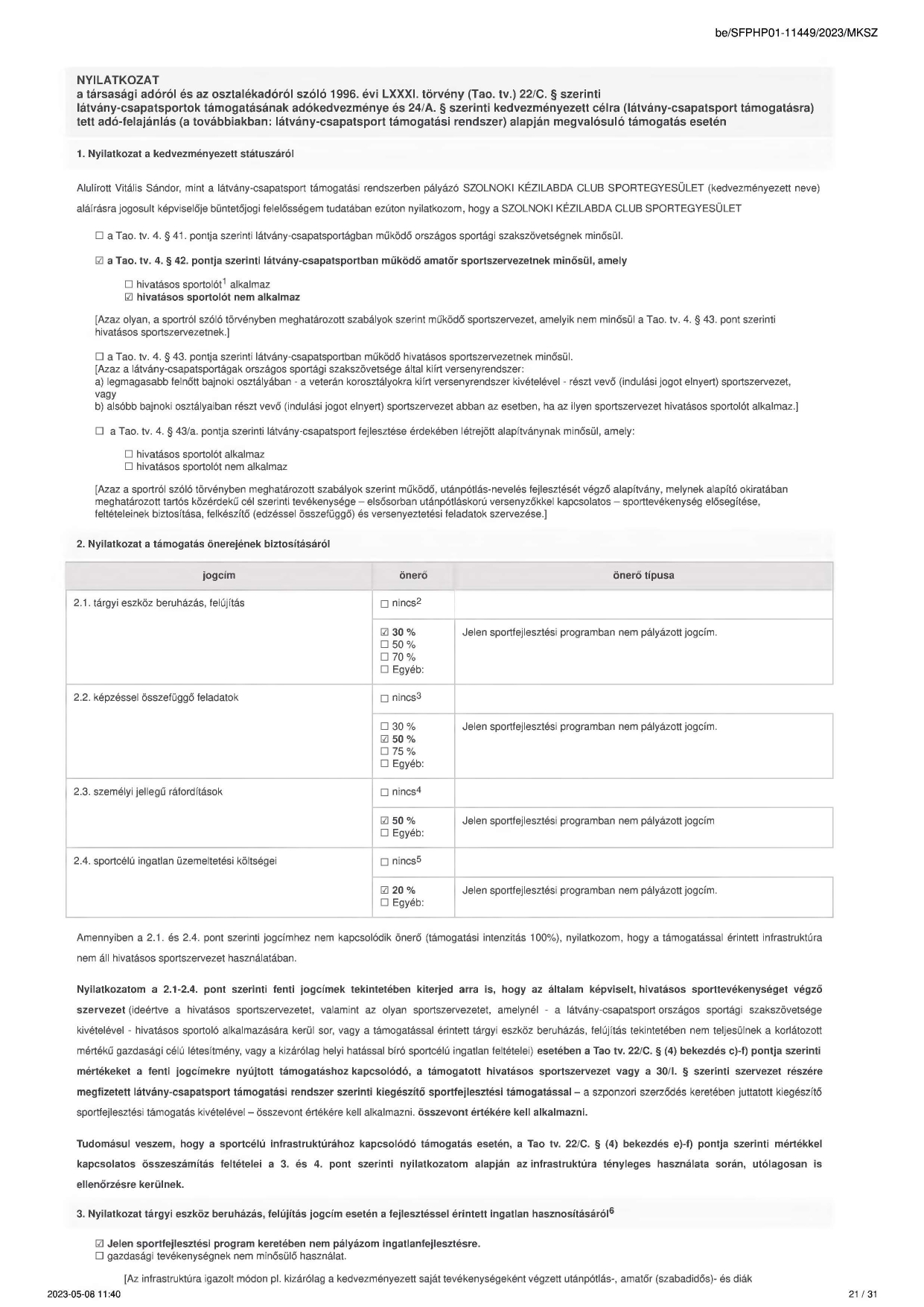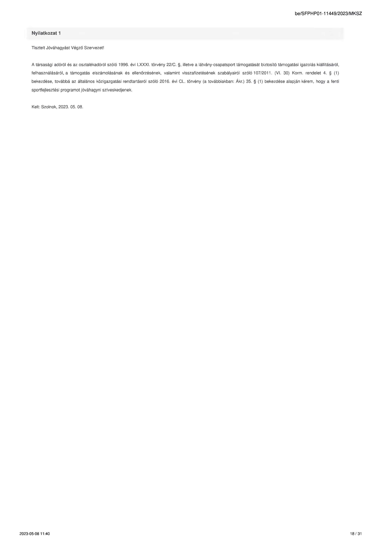 Jóváhagyó határozat, TAO pályázat teljes (2022/2023)