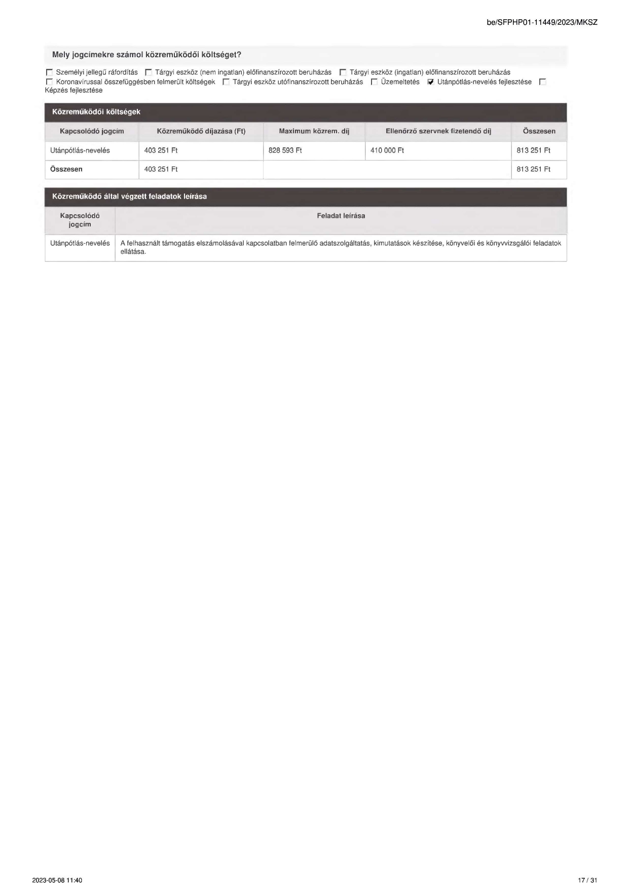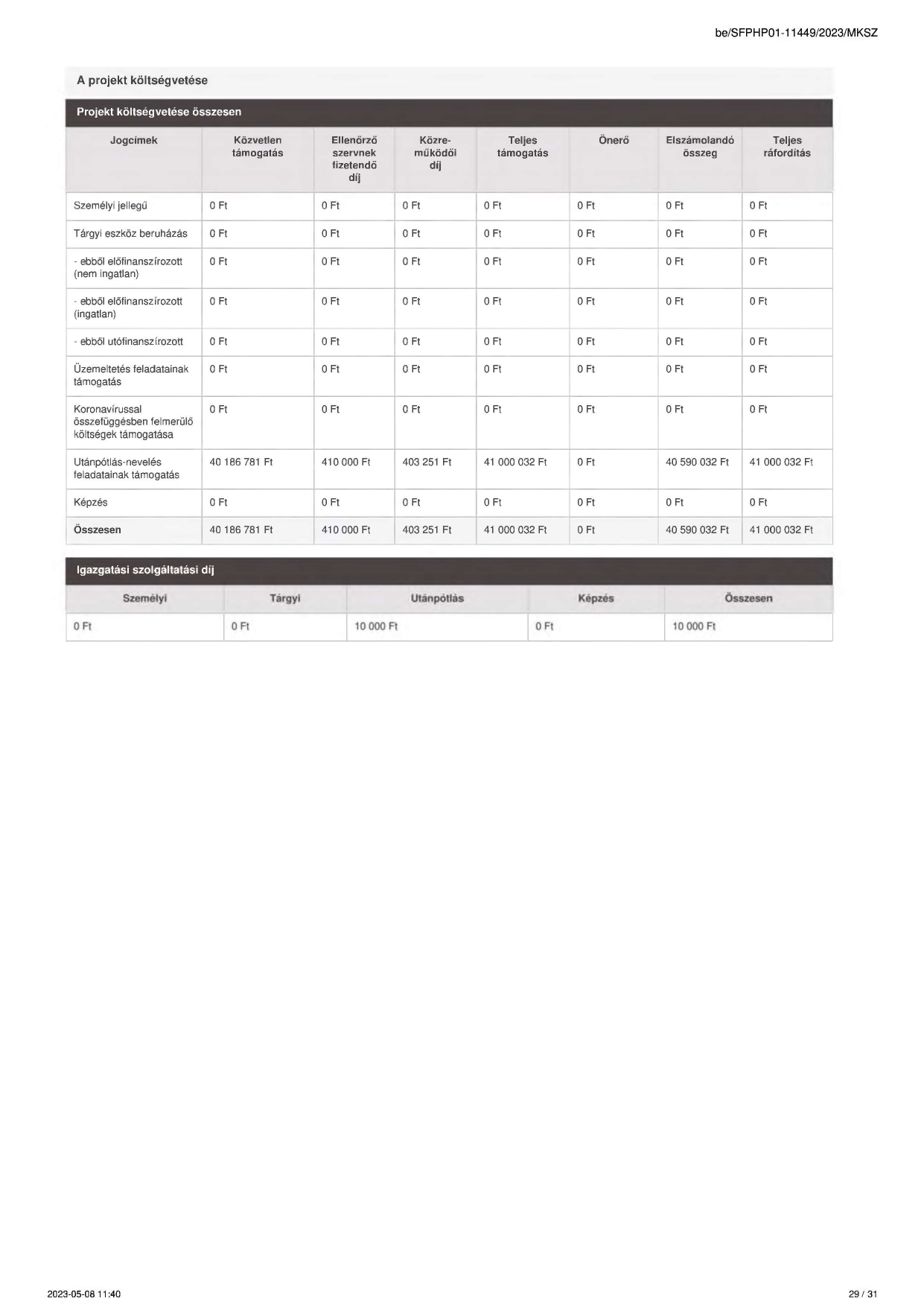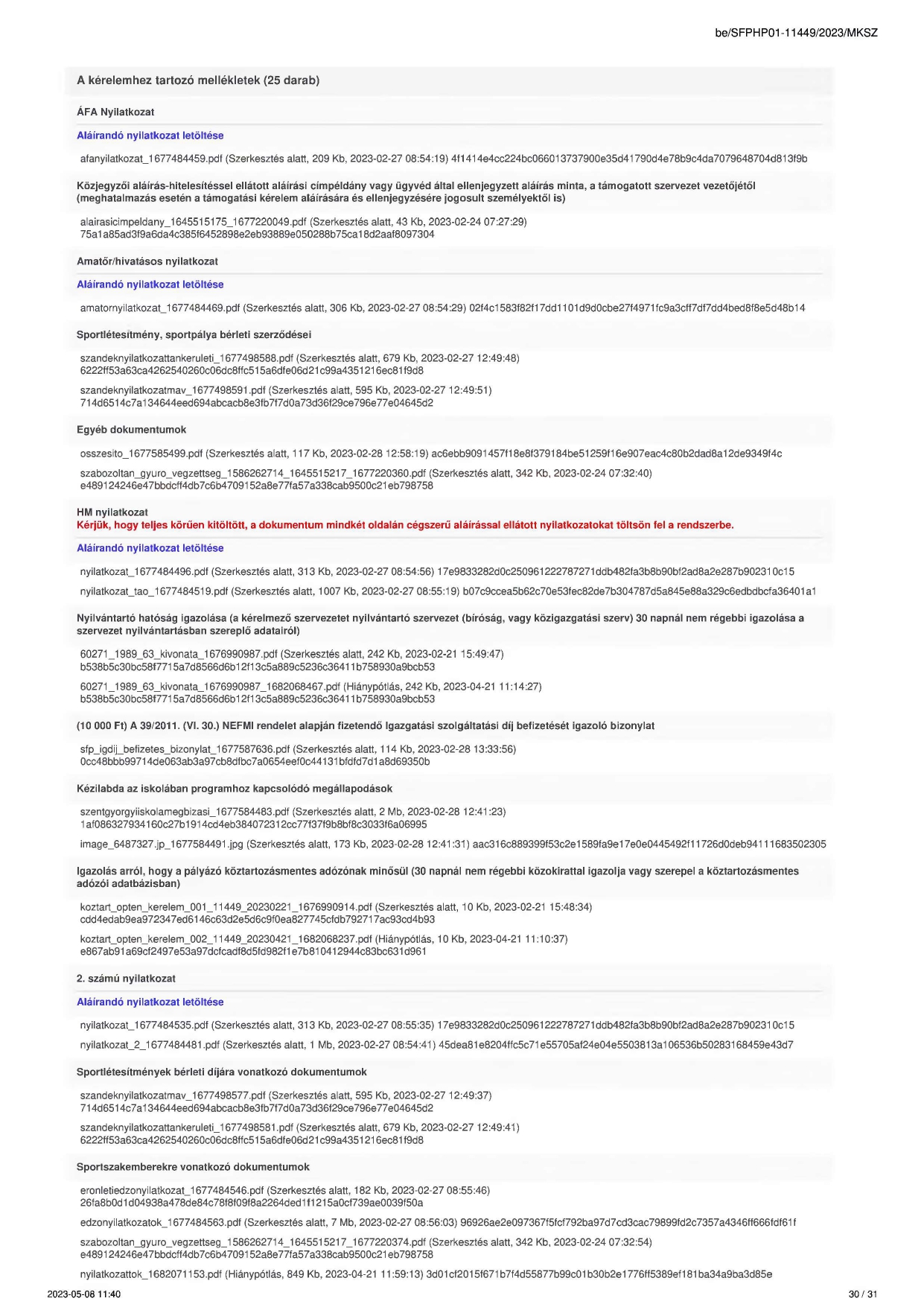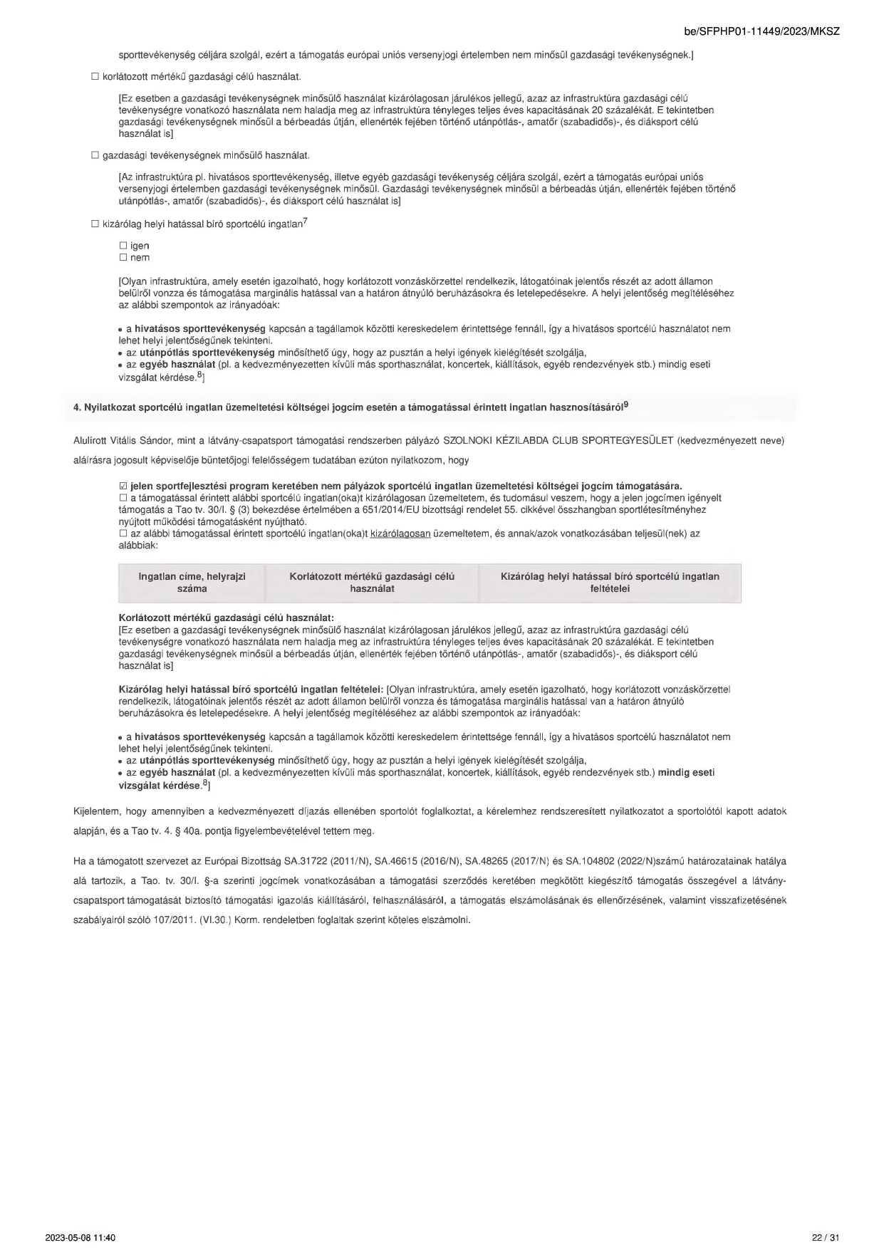 Jóváhagyó határozat, TAO pályázat teljes (2022/2023)