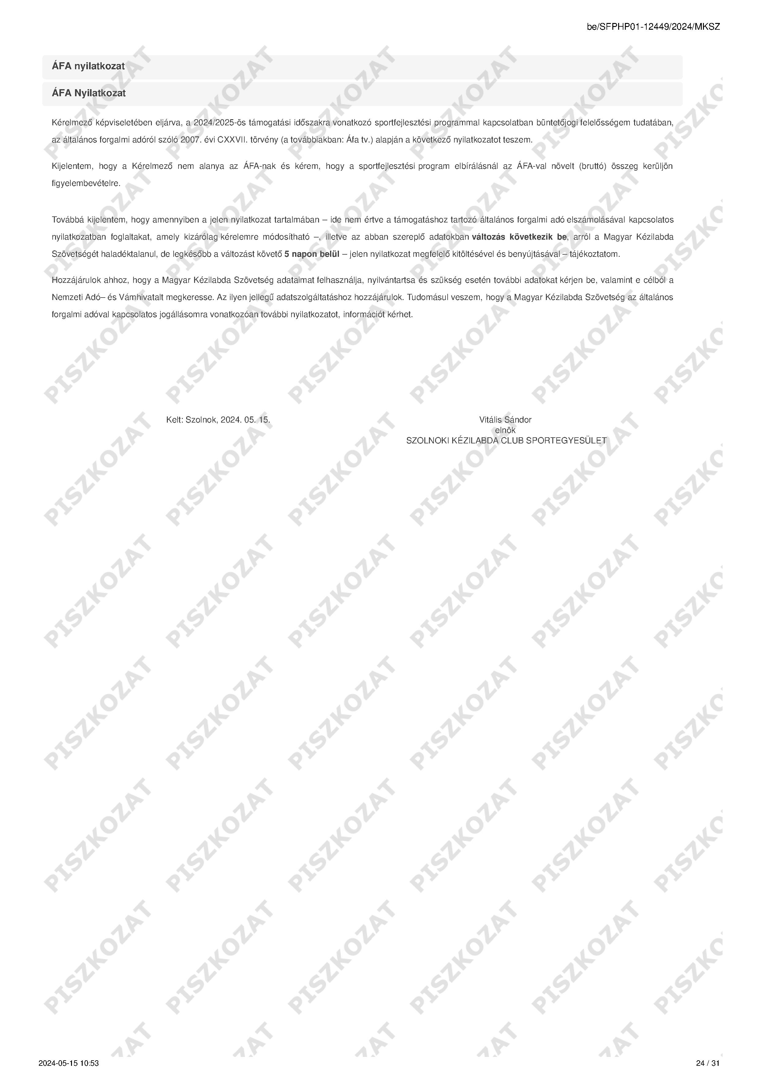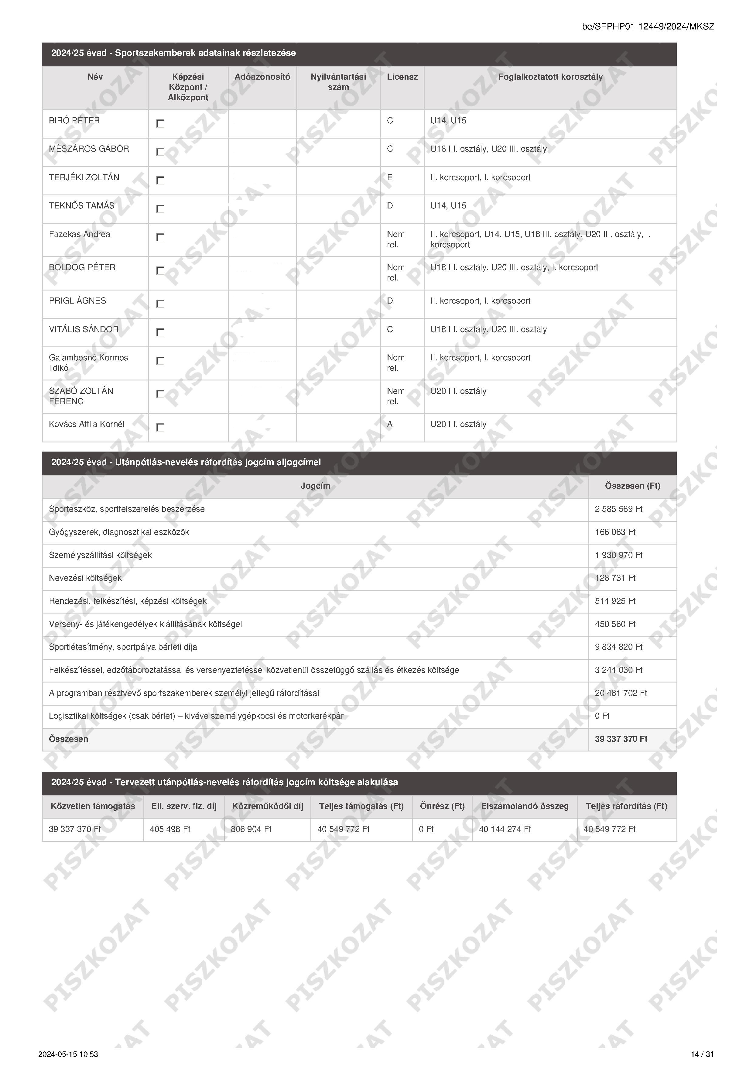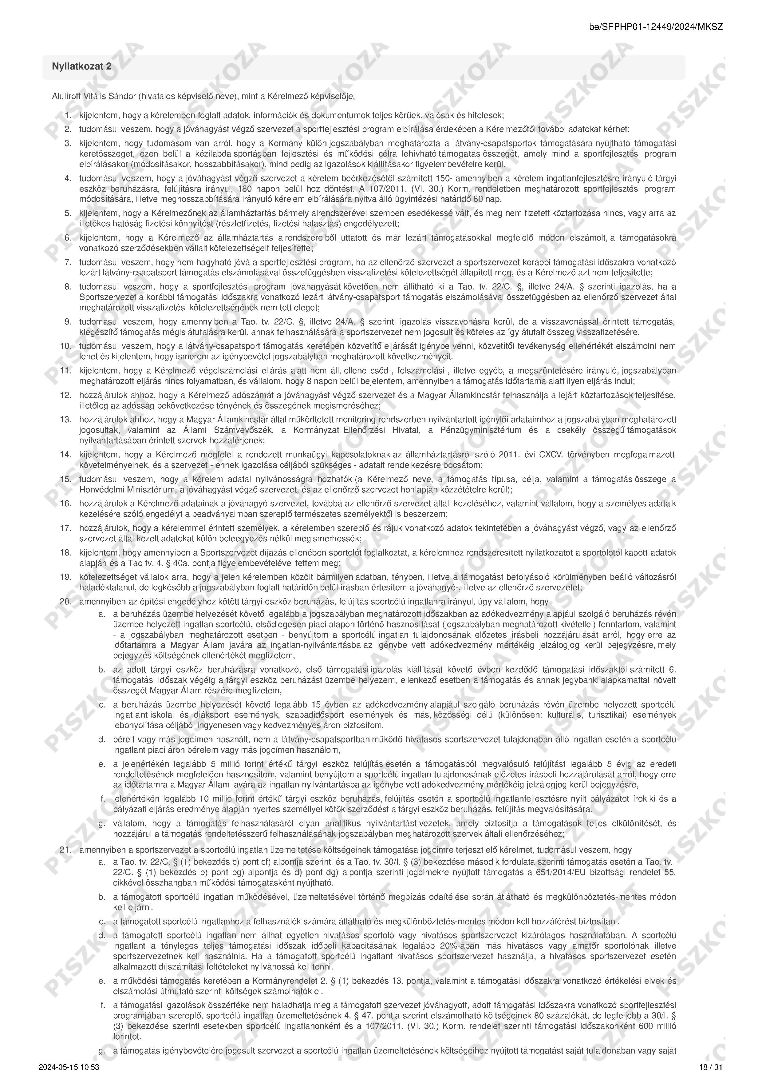Jóváhagyó határozat, TAO pályázat teljes (2024/2025):