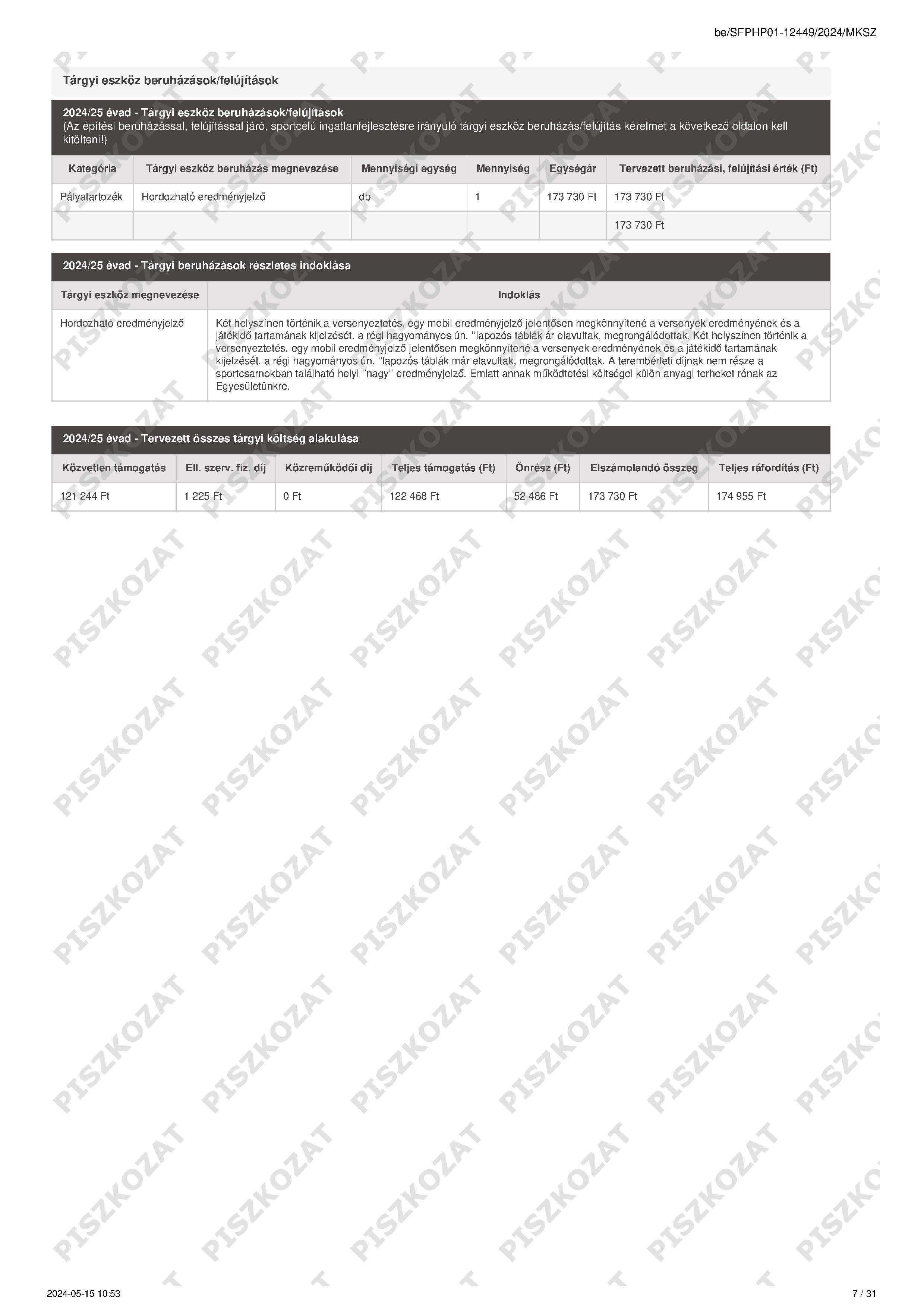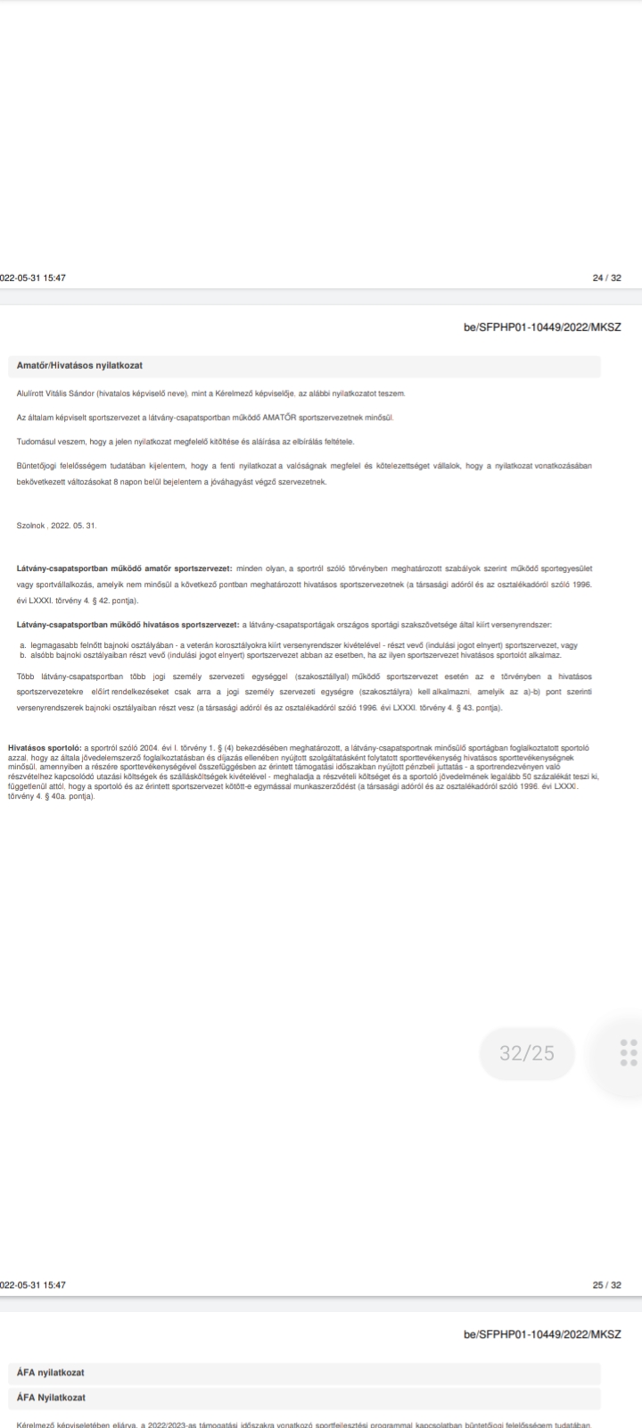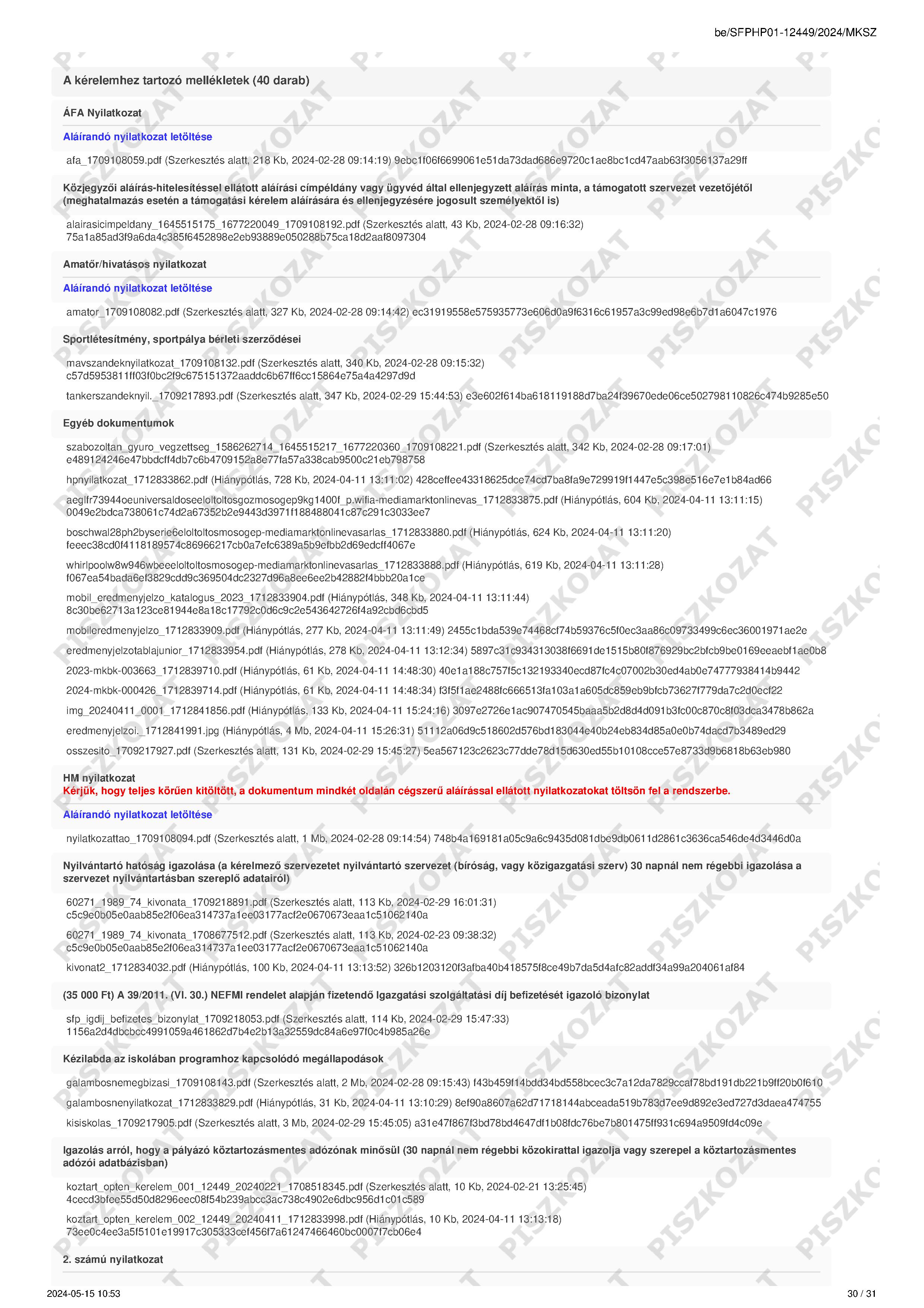 Jóváhagyó határozat, TAO pályázat teljes (2024/2025):