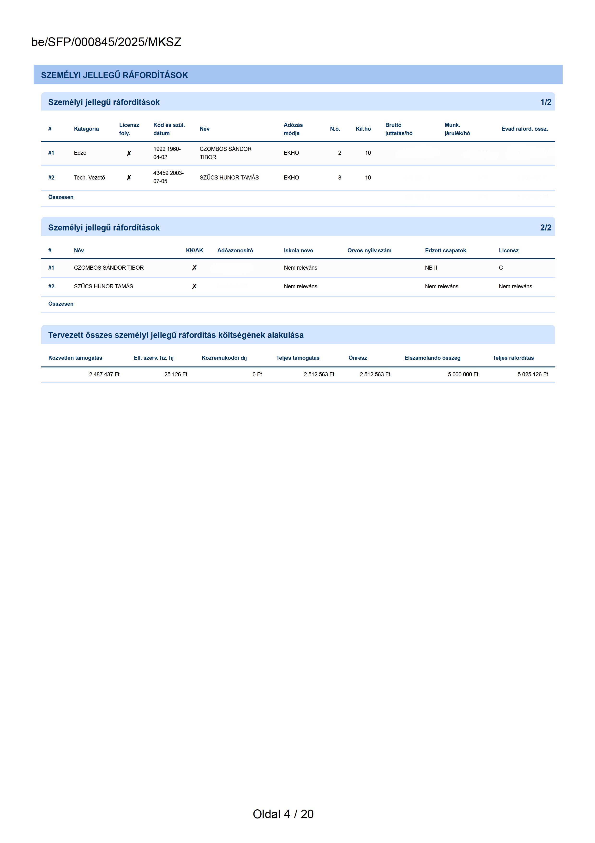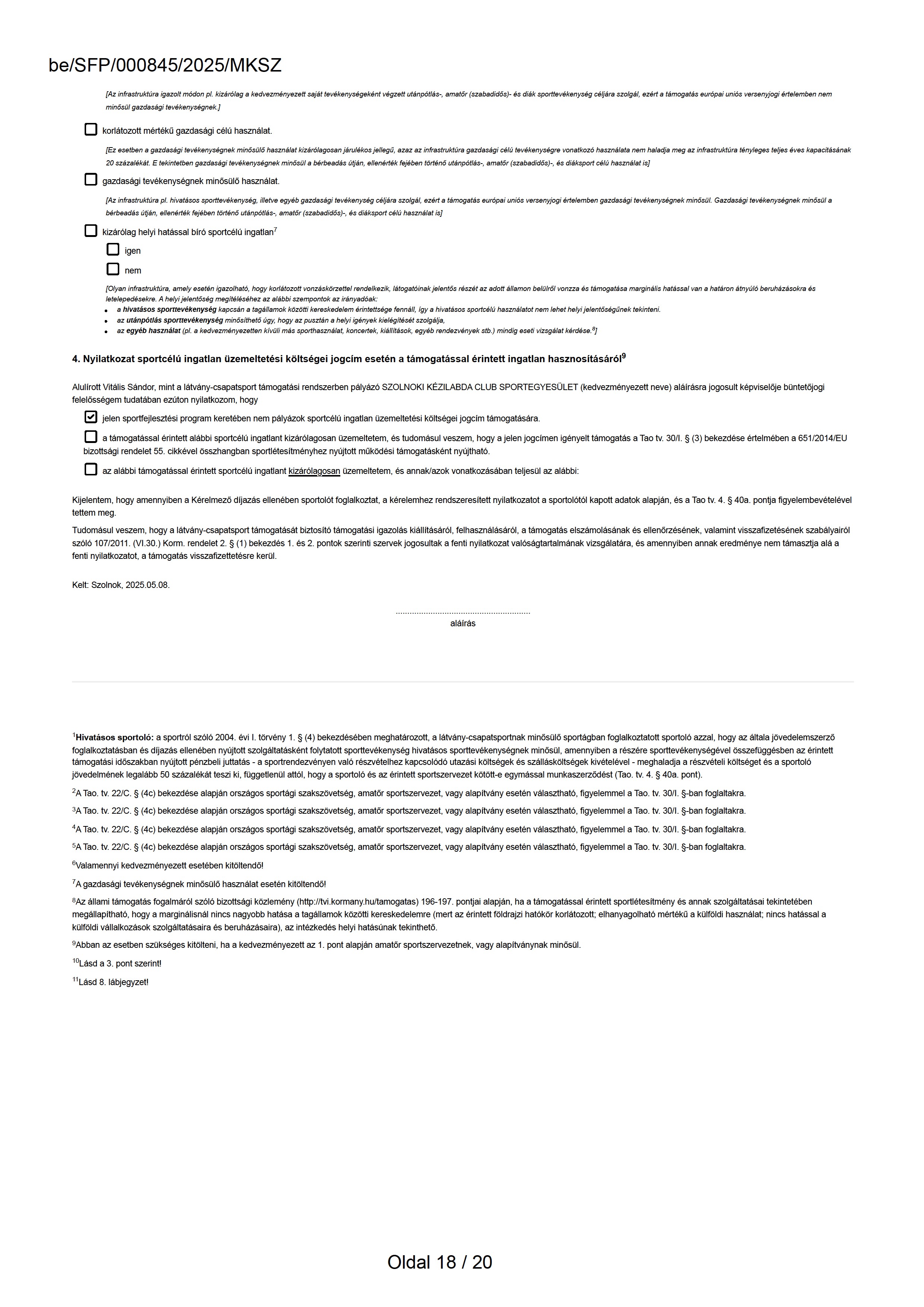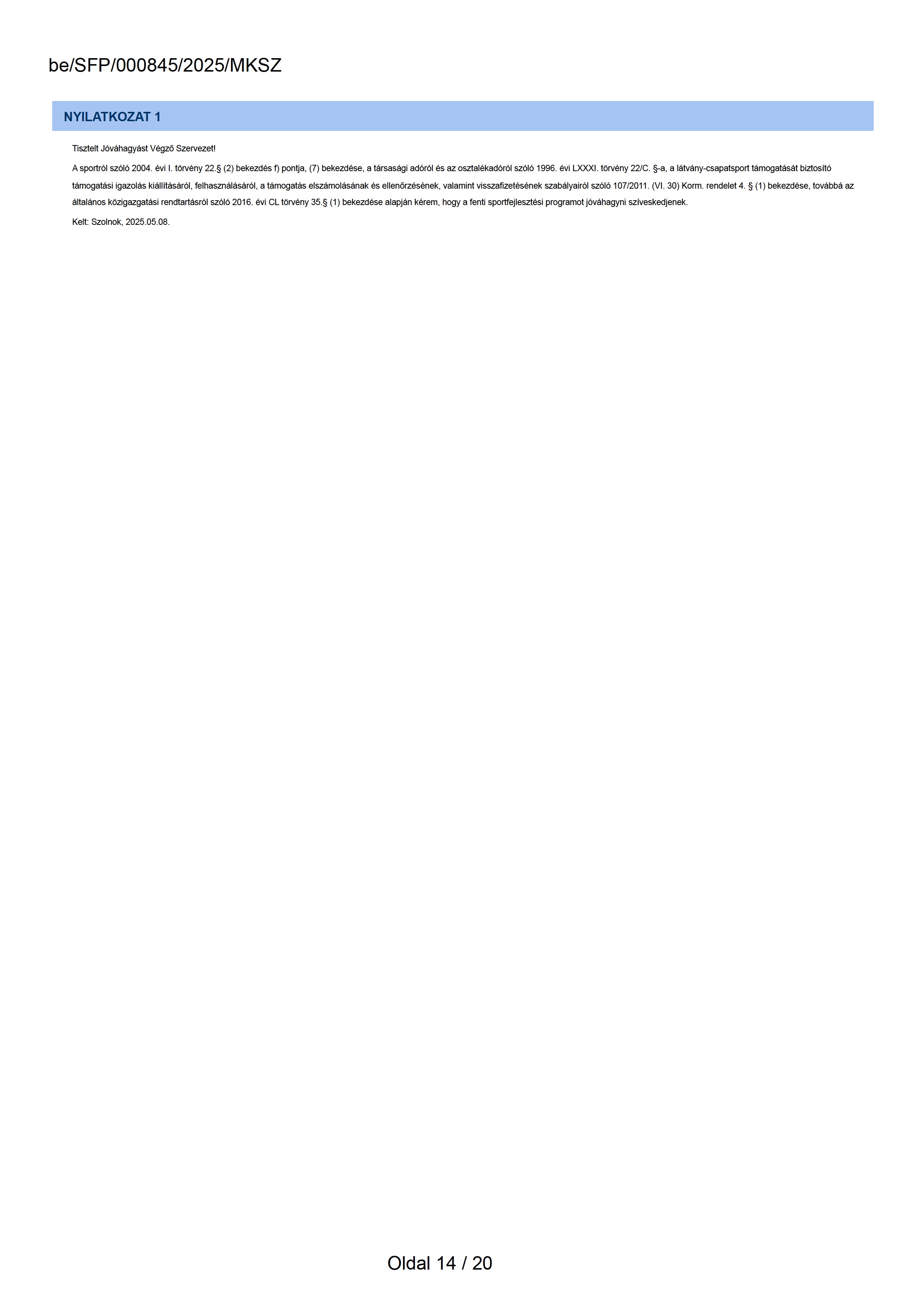 Jóváhagyó határozat, TAO pályázat teljes (2025/2026):